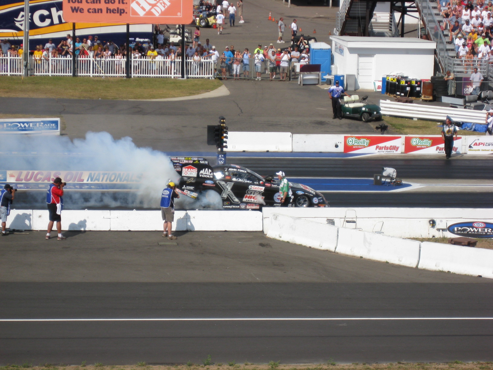 August 10th, 2008 img_2226-50 by John Havlik Team Force funnycar burnout. One of the four John Force racing team funnycars.
